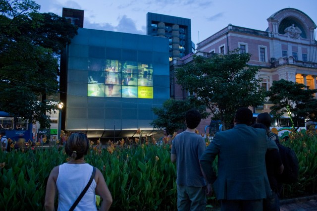 We proposed a live data visualization at the museum’s facade that resulted from geolocated tweets originating from the square perimeter . However, given the sensitive political climate in the country, it was not possible to do a live demonstration of this project. Download research report (in Portuguese).