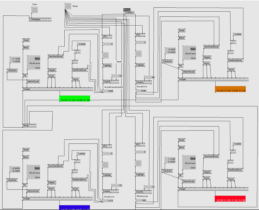 The “Observatory of an Ecosystem of Emotions” consists of a data visualization generated by the monitoring of predefined hashtags on Twitter themed around the Brazilian presidential election of 2018. We collected tweets that used trending hashtags during controversial campaign moments and applied Digital Methods and Data Science approaches to Sentiment Analysis. We used Processing and VVV to create generative art visualizations based on the contextual mining of the tweets’ text categorized by six emotions: pride, sadness, joy, fear, love and anger.